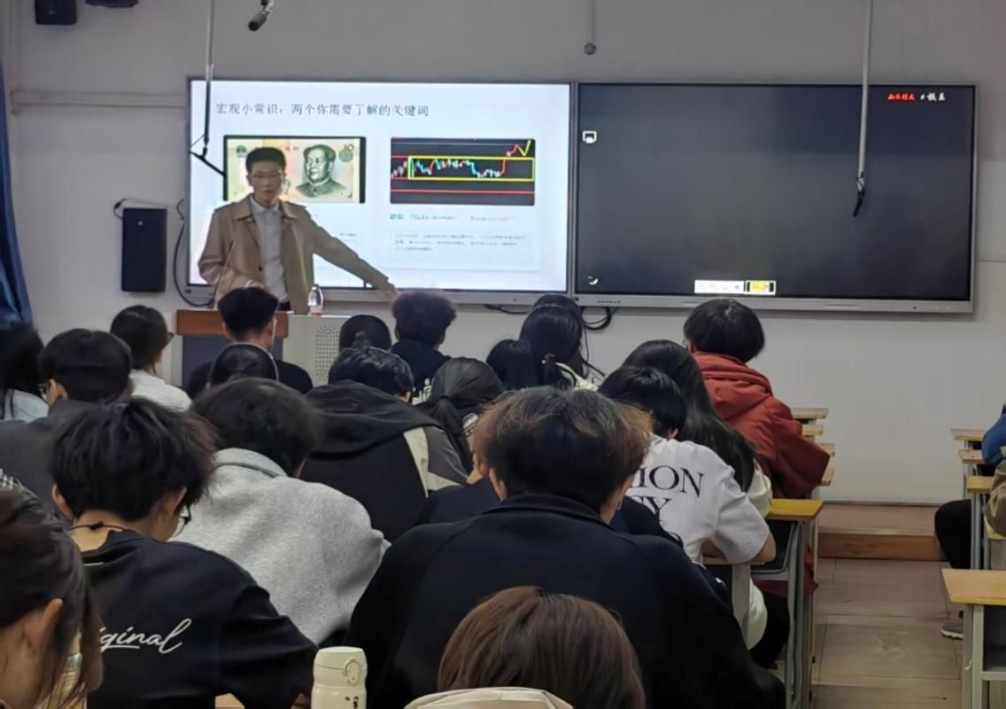 讲座现场,主讲人跳出传统“存钱理财”的狭隘认知,围绕大学生日常消费规划、校园金融风险识别、基础财富逻辑构建、合法理财渠道科普、青年金融反诈避险等核心内容,层层递进地开展财商知识普及。结合资本市场真实案例、校园高频金融陷阱及年轻人财富成长路径,毕经理以通俗易懂的语言拆解复杂金融知识,系统讲解了财富积累的底层逻辑、理性消费原则、借贷风险边界及个人信用保护要点,深刻剖析了当代大学生树立正确财商观、筑牢金融安全防线的重要意义。